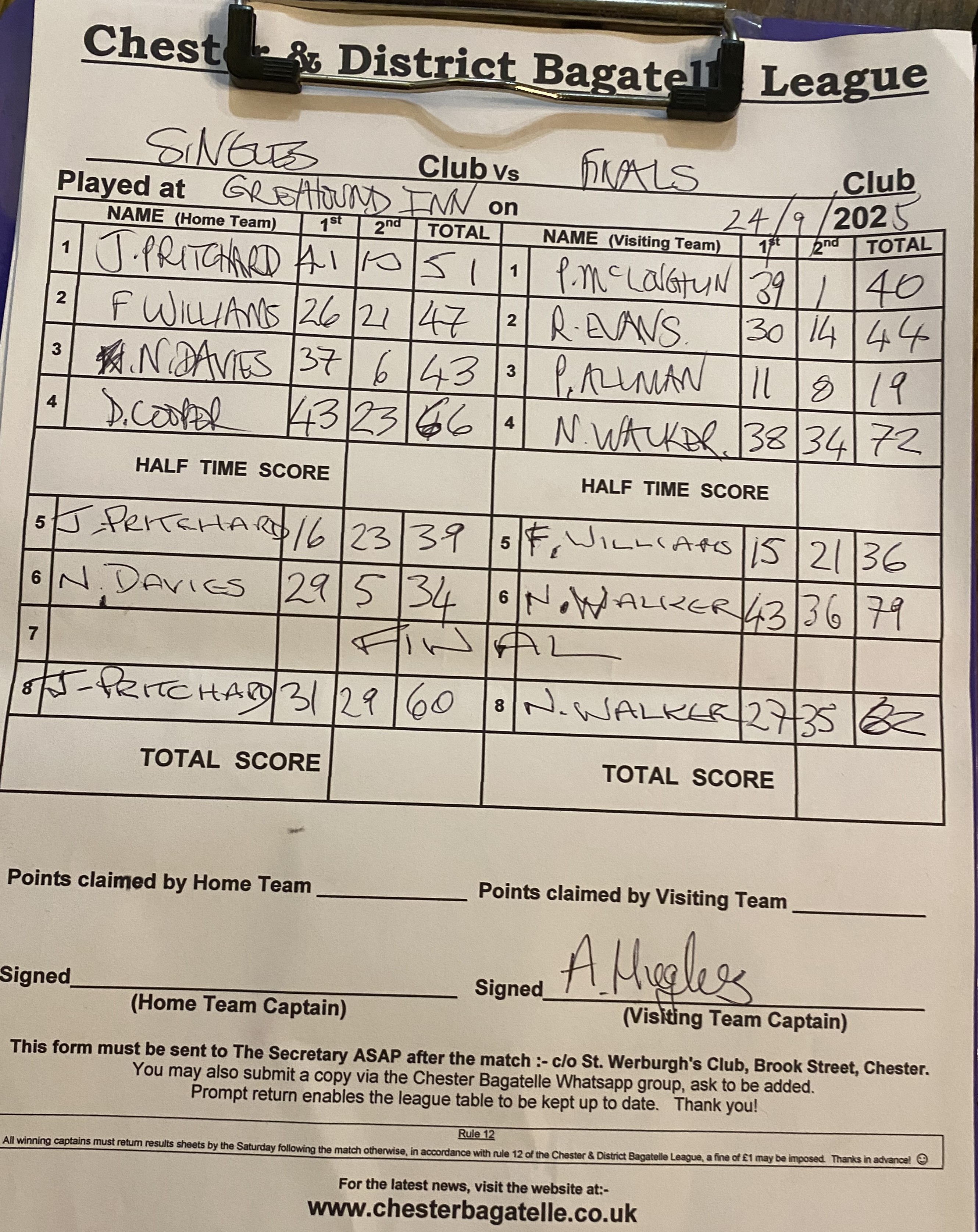 Egerton Arms: L. Evans 75, P. Wallace 70, P. McAleer 57