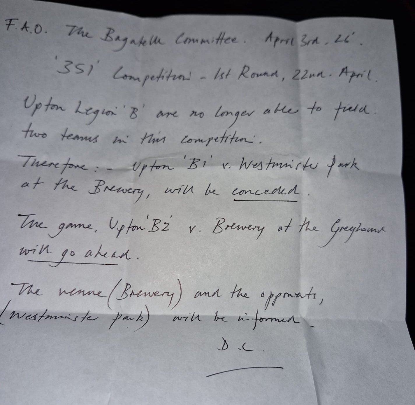 Fixture lists are being distributed by Neil Davies, first two fixtures